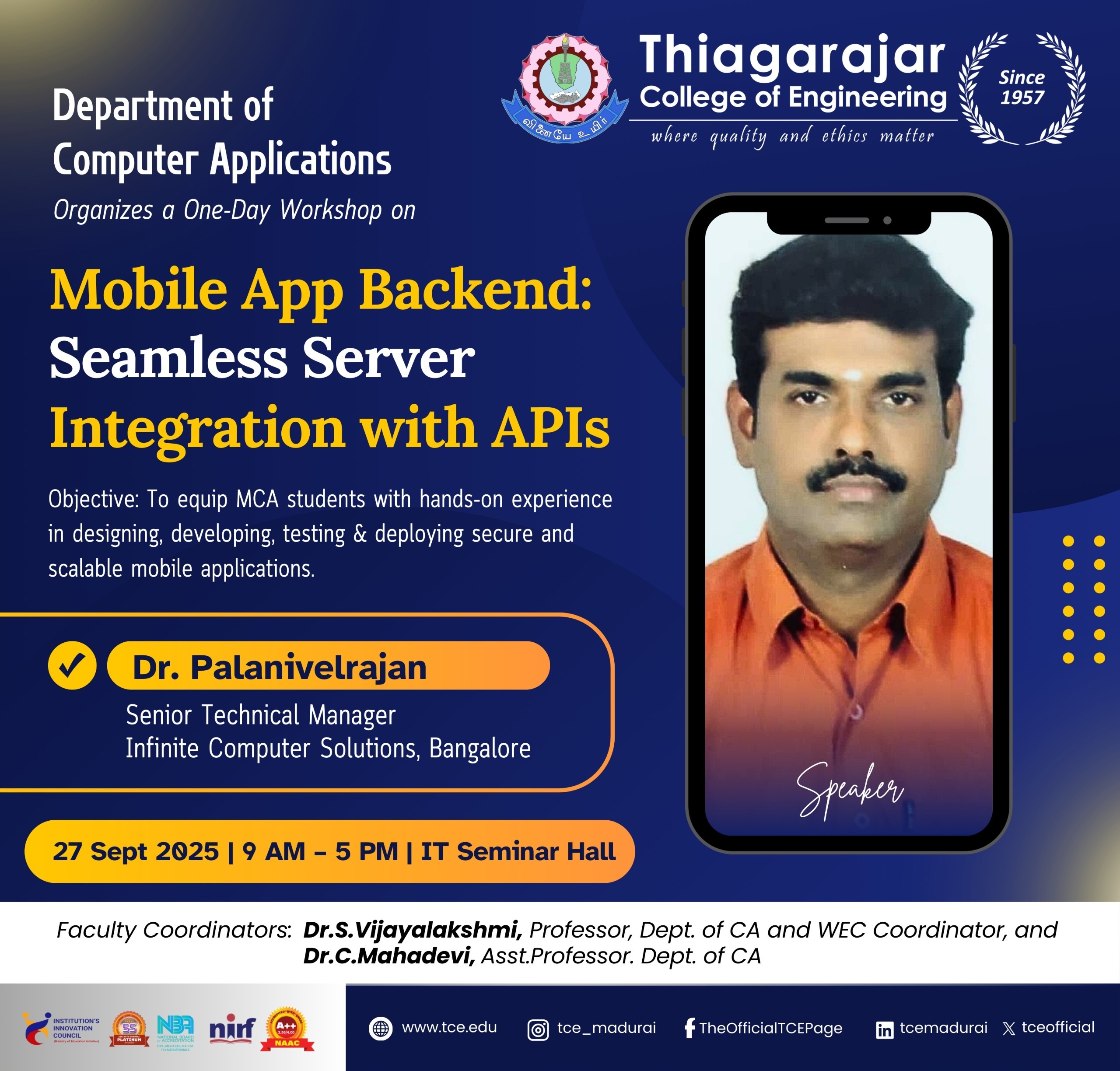 • Student Workshop on Mobile APP Backend: Seamless Server integration with APIs