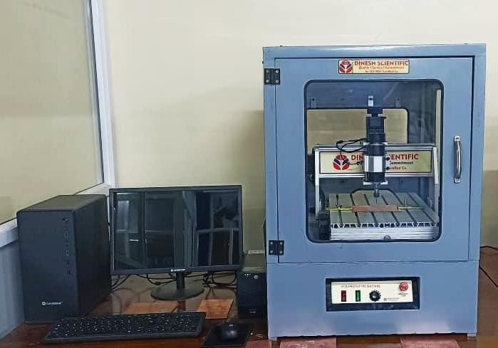 1. PCB Fabrication & Prototype Line (Rapid Iteration) : 2. Surface Mount Technology (SMT) Assembly Line (Precision Production) 3. Testing, Rework & Quality Assurance (QA) 4. Design & Simulation Suite A dedicated computer lab featuring Intel i5 12th Gen systems and essential open-source software (eSim, 123PCB, CAD tools) and PCB Artist for training and digital design verification. Solder Paste Mixer Machine Model No. DS-702 Soldering and Desoldering Machine Model No. DS-709 Professional HD Industrial Microscope Camera Magnifier Model DS-711 Semi-Automatic Stencil Printer Model No. DS-703 Auto Loading Machine Model No. DS-704 6 Head SMT Machine Model No. DS-706 Reflow Oven Model No. DS-707 Ultrasonic PCB Cleaning Machine Model No. DS-710 PCB prototype machine Model no. DS-701 3D Printer | ![]()
