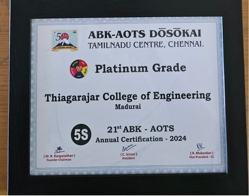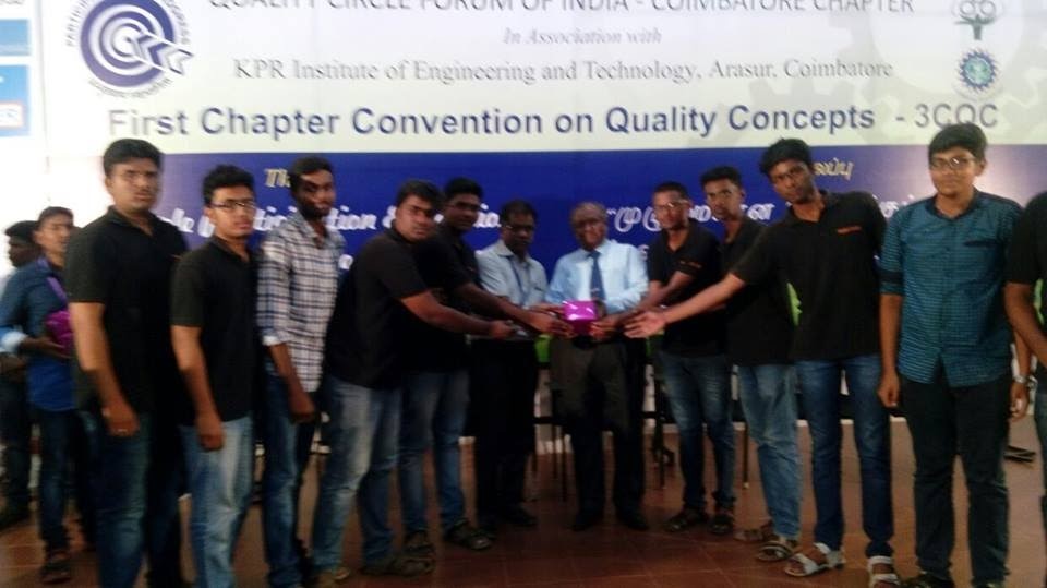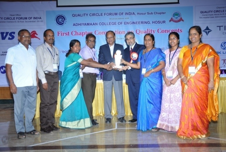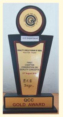 At the First Chapter Convention on Quality Concepts – Hosur Sub chapter 2016, the ECE Department received the Gold Award, while the TCE Library, Mechanical Department, College Office and Ladies Hostel shared the Silver Award.