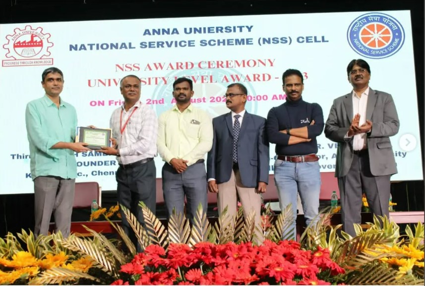 Dr. S. Siva Ilango, Programme Officer, was awarded “Best NSS Programme Officer (2022–2023)” at the University Level among colleges affiliated under Anna University, Chennai. |