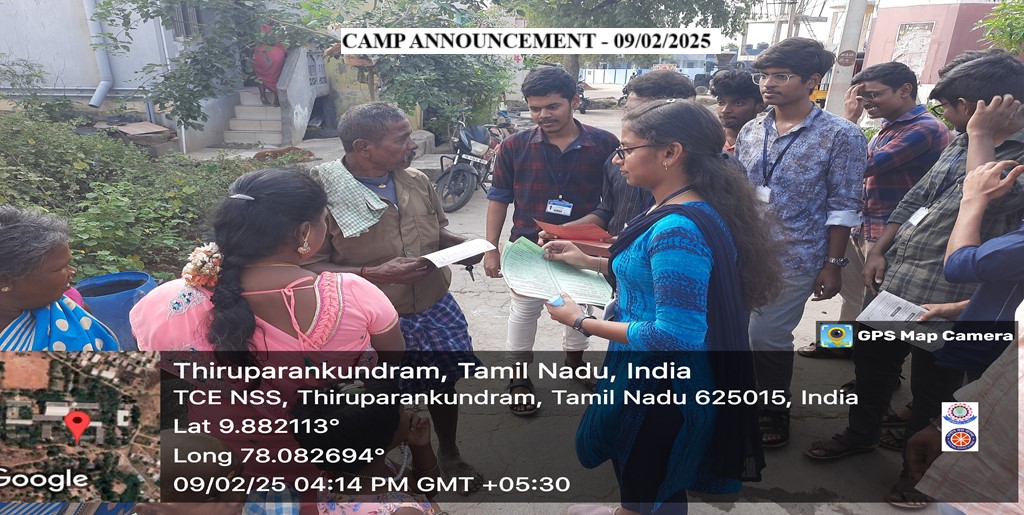 The NSS Unit of Thiagarajar College of Engineering organizes a seven-day Special Camp annually in adopted villages, focusing on rural development, cleanliness, health awareness, digital literacy, environmental sustainability, and social welfare initiatives. Through community surveys, sanitation and cleanliness drives, health and medical camps, awareness programs, educational sessions for school students, and environmental activities, NSS volunteers actively engage with villagers to address local needs. The camp strengthens community bonding while enabling volunteers to develop leadership, teamwork, and social responsibility, truly reflecting the NSS motto, “Not Me, But You”