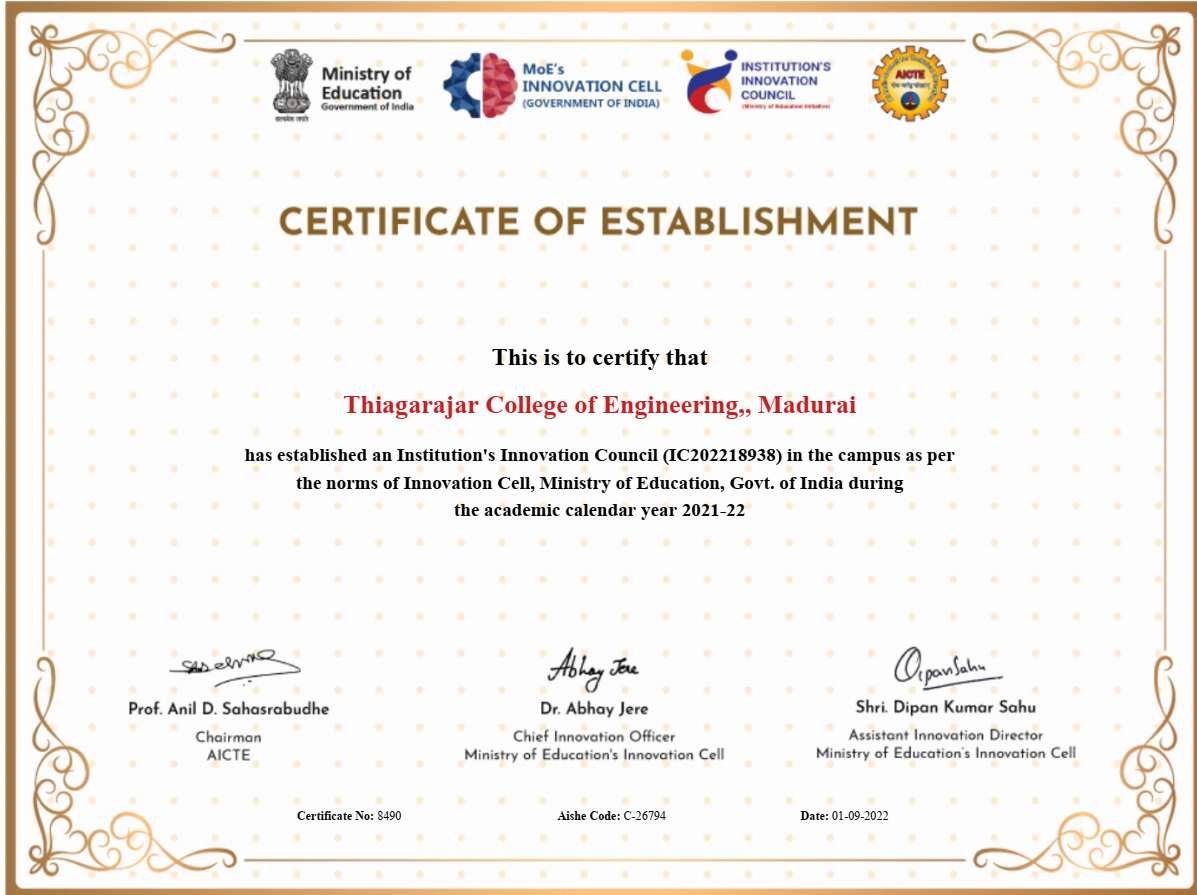 Ministry of Education, Govt. of India has established its Innovation Cell at AICTE with a purpose of systematically fostering the culture of Innovation amongst all Higher Education Institutions (HEIs) across the country.