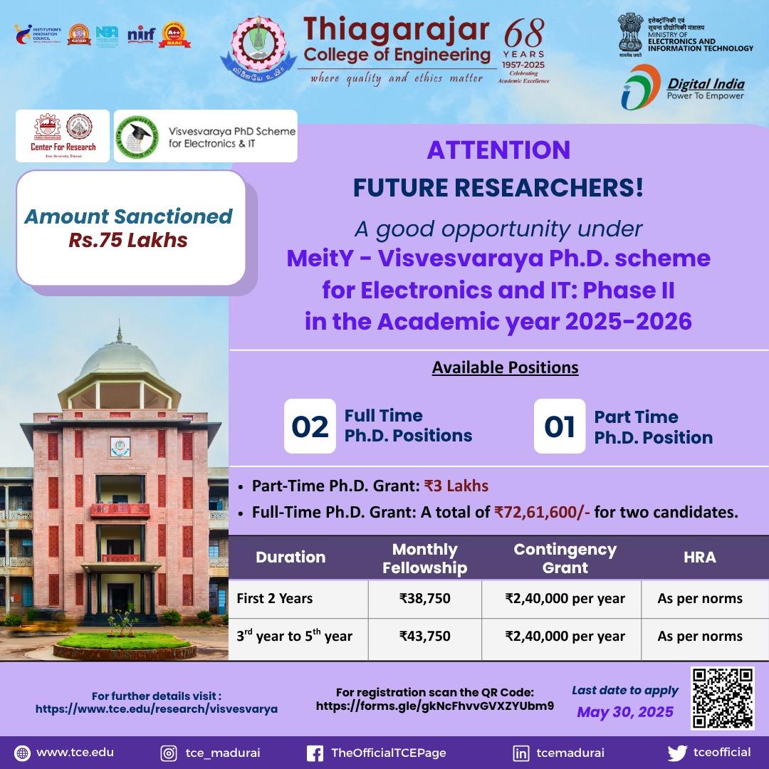 Visvesvaraya Ph.D. Scheme for Electronics & IT – Phase II at Thiagarajar College of Engineering