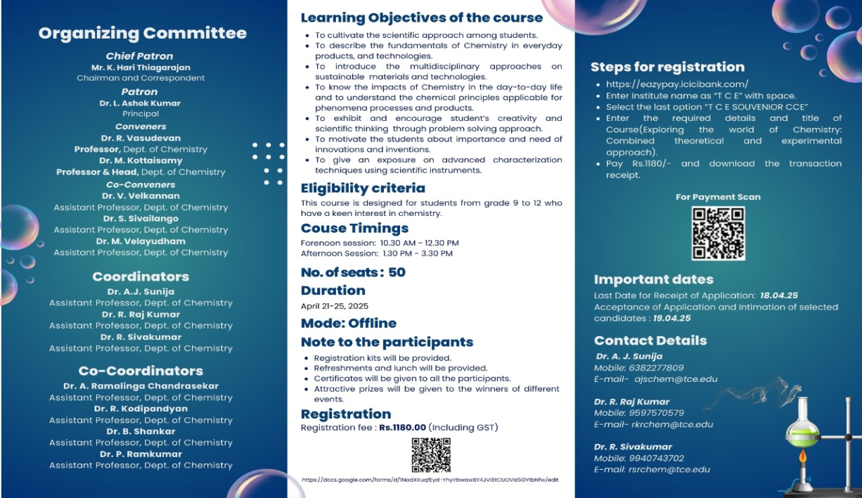 Internship Program offered by Dept of Chemistry for other college/University students during December 2024-25.