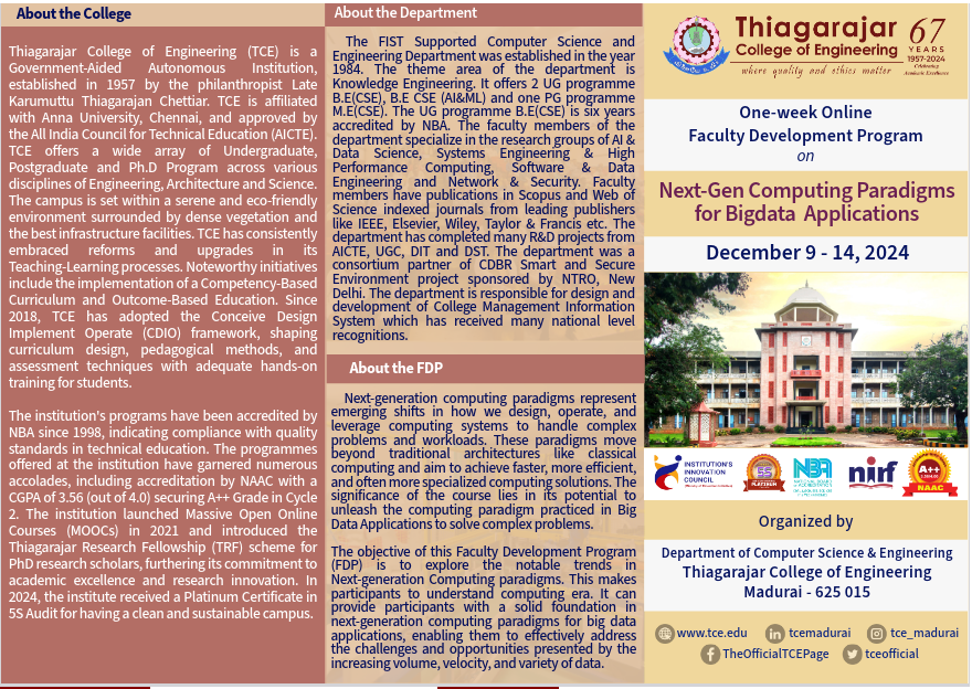 1. One week Online FDP on Next-Gen Computing Paradigms for Bigdata Applications