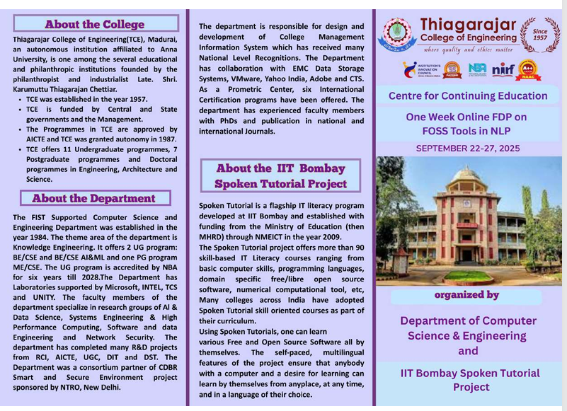 1 | Faculty Development Programme 1.One week Online FDP on FOSS Tools for NLP | 1 |