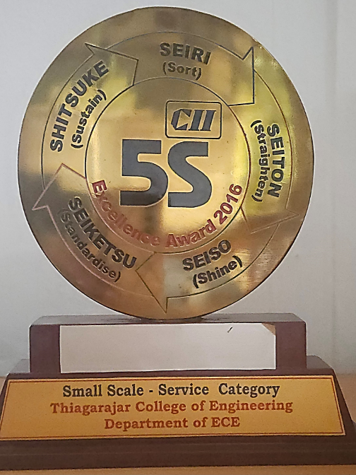 CII – SR 5S Excellence Award 2016 – 12th Edition Department of ECE has won SECOND place in small scale – service category