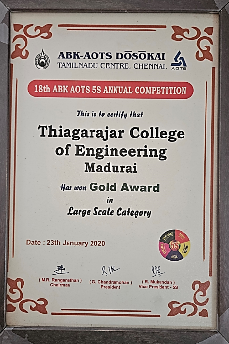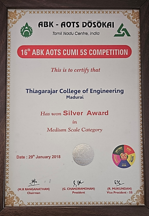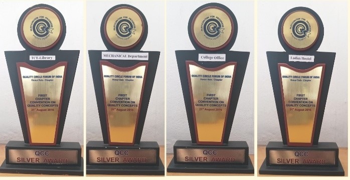 At the First Chapter Convention on Quality Concepts – Hosur Sub chapter 2016, the ECE Department received the Gold Award, while the TCE Library, Mechanical Department, College Office and Ladies Hostel shared the Silver Award.