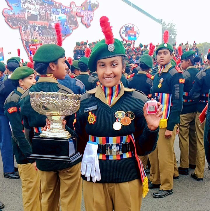 In a historic feat, CUO S. Gayatri (III Year EEE) marched in the Republic Day Camp (RDC) parade at the Prime Minister's rally in Delhi on Republic Day, 26 Jan 2024 and received the DG Commendation Award